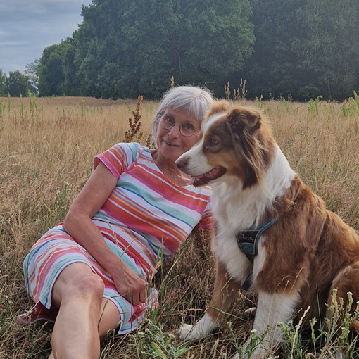 mit ihrem Schäferhund-Rüden Ivar und Australian Shepherd-Hündin Lotte